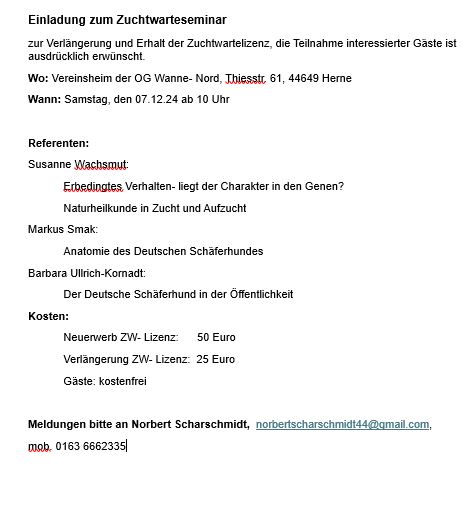 Insgesamt kann sich der Schäferhundeverein Hamm-Berge über seine Trainingsgruppe freuen, die bei 15 Starts 11 Mal das Wertungsurteil vorzüglich erlangten. Für 4 Mitglieder des Vereins ist es die Qualifikation zur Teilnahme an der 4. Deutschen Meisterschaft des Schäferhundeverbandes in Aubachtal (Rheinland/Pfalz) am 24. und 25. August.
